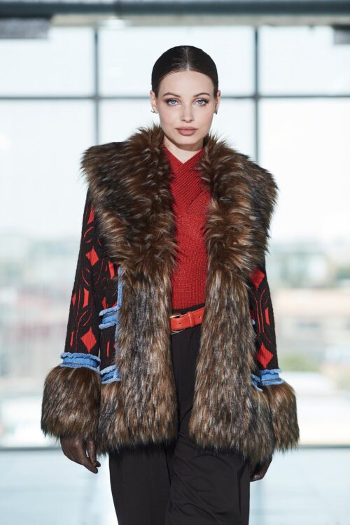 It's the perfect choice for the modern woman who values exclusive design and seeks a versatile piece that elevates any outfit, from an office look to a night out. Its combination of warmth, unique design, and handcrafted finish makes it a timeless investment for your wardrobe.