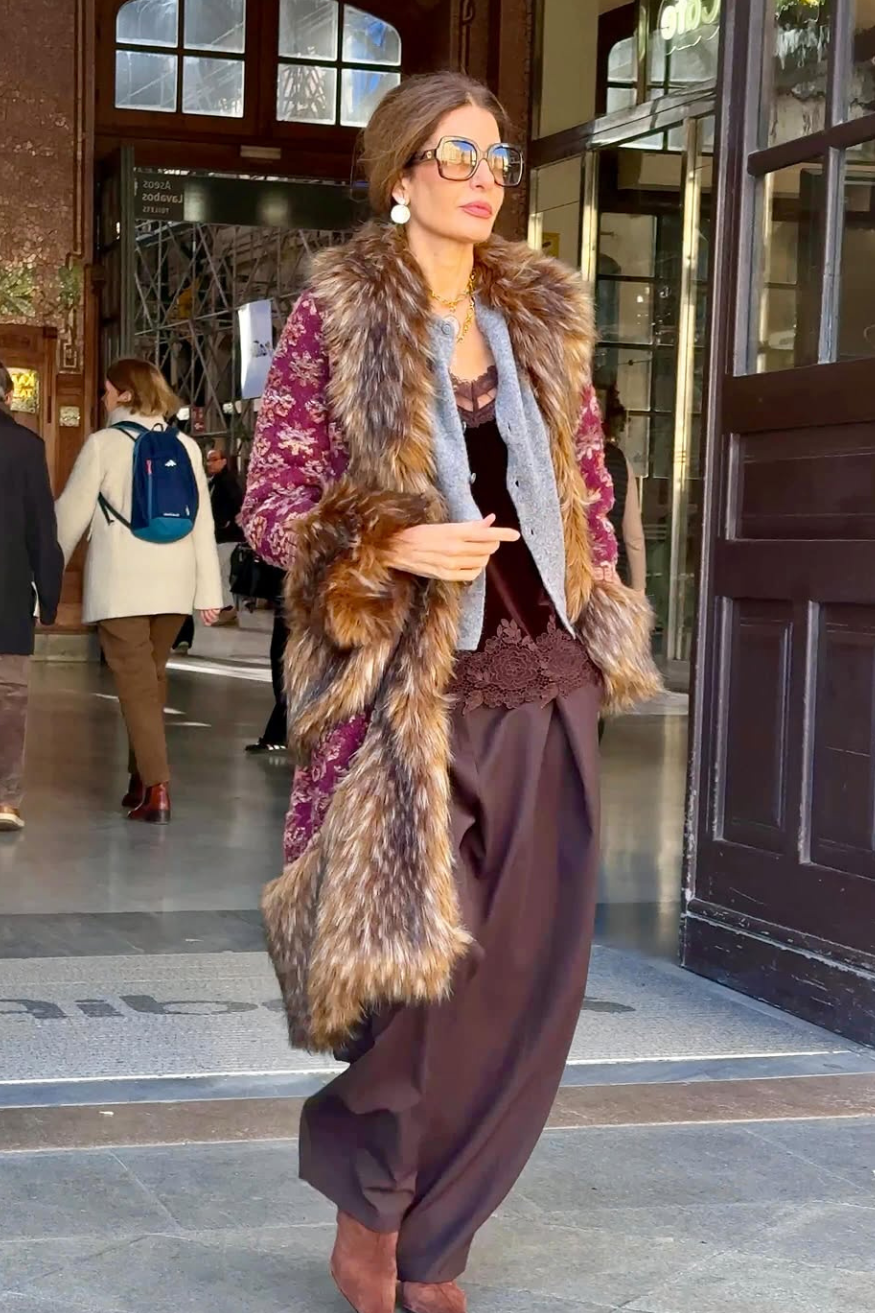 Renee Ethnic Beige Fur Coat
